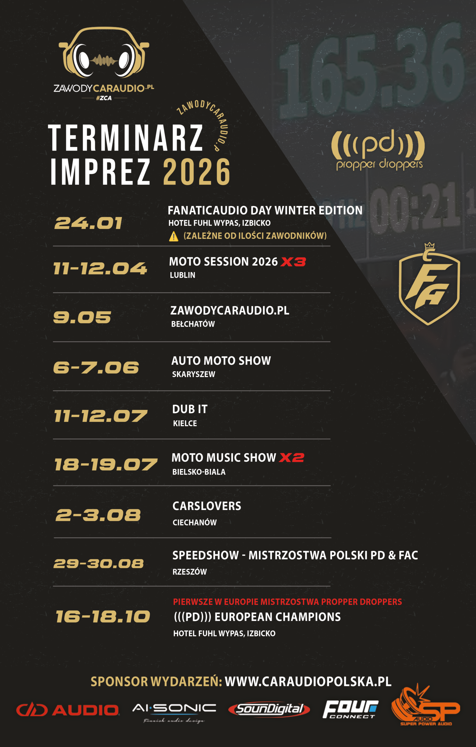 Standardowo na stronie https://zawodycaraudio.pl w prawym górnym rogu znajdziecie przycisk „REJESTRACJA” który przeniesie Was do miejsca gdzie będziecie mogli zarejestrować na najbliższe zawody !